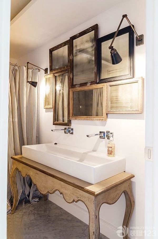 三、在利用鏡面擴展功能的同時,不要忘記它的裝飾作用。案例就是個最簡單也最好理解的裝飾方法。將幾面鏡子頗具創意地安置在衛浴空間,在擴大空間范圍的同時,更使得主人每日的梳洗打扮充滿樂趣——多一面鏡子,多一個發現自己另一個側面的機會。