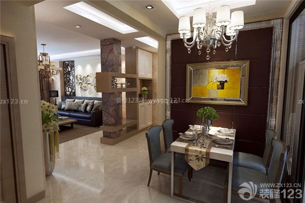 濃濃的紫咖色硬包,奢華中略帶典雅,鏡框線采用鑲鉆式,閃閃發光。用硬包演繹小資奢華,讓餐廳也極具情調。