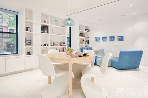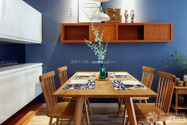 看到這樣的餐廳設計,不知道大家是不是和小編一樣被深深的吸引了呢,非常有個性的藍色調設計讓這個餐廳散發出一種沉靜的美感。光滑的木質桌面處理讓原木材質具備了現代之美,澄凈的藍色系背景墻與餐桌的椅面相呼應,給小戶型層次之美。