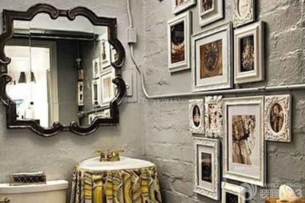 裝修tips:這個衛生間的主基調是藝術氣息十足的灰白色。灰白色系的衛浴空間里,墻面上的白色畫框讓衛生間的藝術氣息更加濃郁,加以黑框花邊大鏡面嵌于墻面上,在藝術氛圍中還具有了一種復古韻味,既精致又優雅無比。