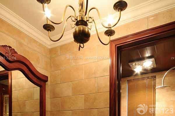 裝修tips:復古色調的彩色瓷磚與大理石地面拼貼出這一具有復古感覺的衛浴空間,特別是墻面上的壁燈為這個衛生間添加了不少復古氛圍,簡約的整理臺也顯出一種異域氣質。
