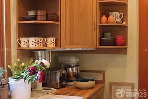 在廚房拐角處安置一個(gè)三角形的吊柜,將所有上部空間全部利用起來(lái)。