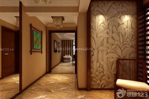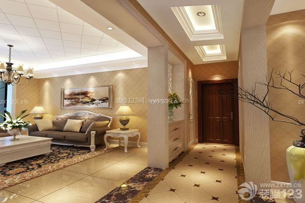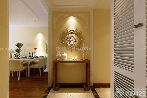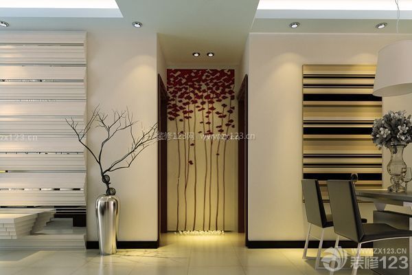 進門處設置“玄關對景”,最大的作用就是遮擋人們的視線。這種遮蔽并不是完全的遮擋,而要有一定的通透性。因此墻壁間隔之間應下實上虛,面對大門的玄關下半部應以良好的磚墻或木板來進行裝修,上半部裝修則可以選用明亮的裝飾材料如磨砂玻璃。墻壁宜光滑,墻壁的顏色要與天花板色調協調一致。