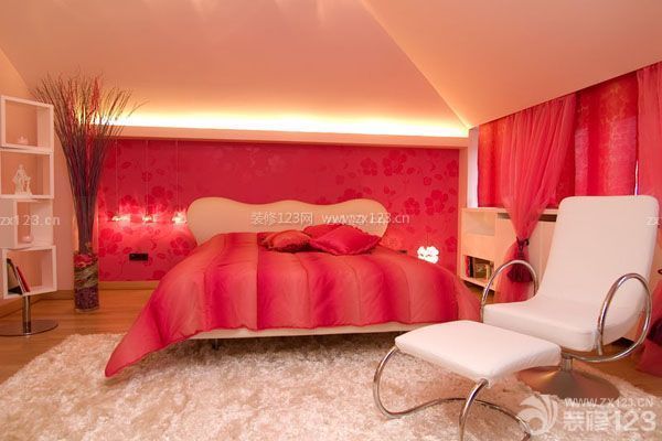 粉紅色是大多數女性所鐘情的色彩,它寓意著愛情和浪漫,能給人一種甜蜜溫暖的感覺。在家居臥室的設計裝修中,粉紅色也成了不少家庭的首選色彩,配上各種色彩和式樣的軟裝飾,在整個空間上營造出可愛而幸福的環境氣氛。