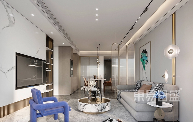 墻面安裝壁燈,燈光照在白色和蒂芙尼藍上,這兩種顏色反射的光,讓小閣樓生動起來。