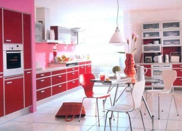 所謂“通透”,是指廚房與餐廳合并。這種情況就餐時上菜快速簡便,能充分利用空間,較為實用。只是需要注意不能使廚房的烹飪活動受到干擾,也不能破壞進餐的氣氛。最好要盡量使廚房和餐廳有自然的隔斷或使餐桌布置遠離廚具,餐桌上方的照明燈具應該突出一種隱形的分隔感。