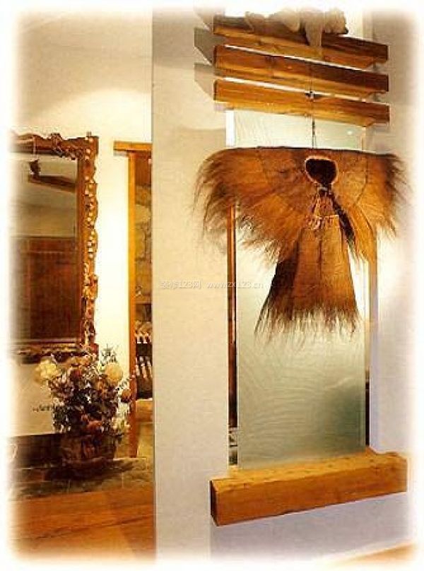 客廳玄關的間隔應以下面實心,防止外泄,上面以通透為主。因此可以用通透的磨砂玻璃或者空心的博古架之類的。