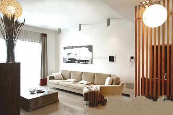 玄關:玄關處的處理,大膽采用木材代替屏風,使得客廳不致于一覽無余。客廳的設計以追求簡約為主題,墻上的裝飾畫作為點綴。
