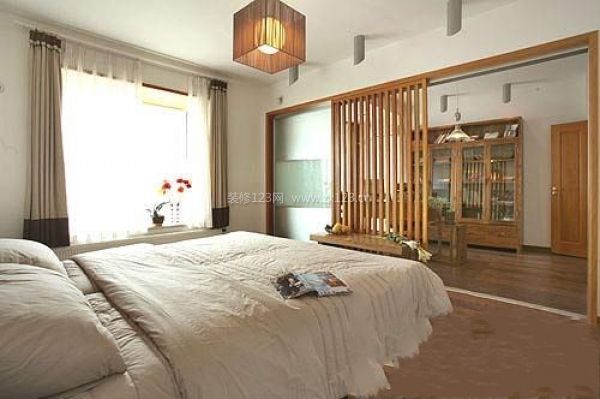 臥室與書房以楠木條屏分隔,斷連自如。空間就是如此空間,東方的極簡表情。