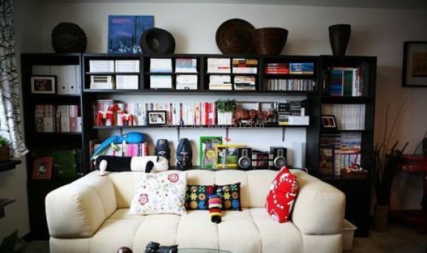 客廳連餐廳25平米左右,因為沒有陽臺,所以顯得不是很大,而東西又很多,所以看起來有點擁擠。沙發,一眼看上就喜歡了,雖然有點小貴,還是出手了。這款沙發可以選擇很多材料,但我還是愛這種淺淺的米色,缺點自然是不禁臟,平常我會罩一個自己做的沙發套。
