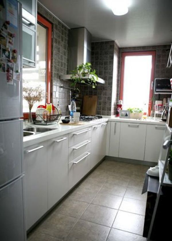 廚房兩面墻都有窗戶,只能選擇非標的一組吊柜。