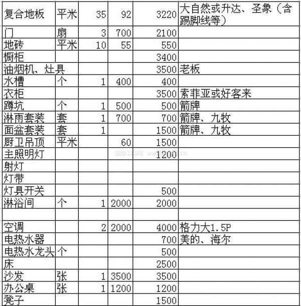 以上為裝修公司半包項目,以下為主材和其他自購項目預算