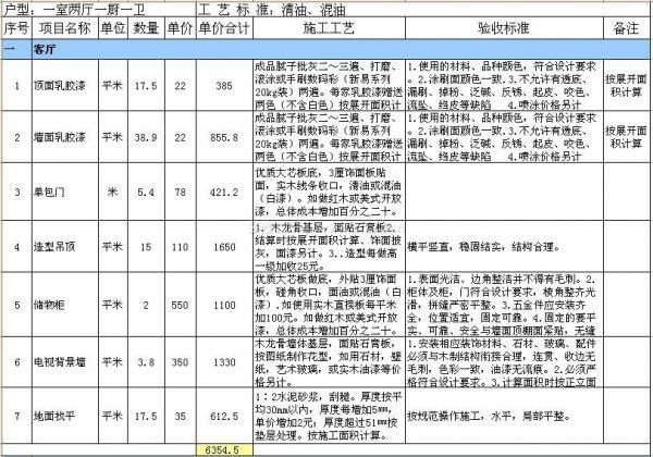 60平米小戶型裝修預算清單及裝修驗收標準(半包裝修,主材自購)