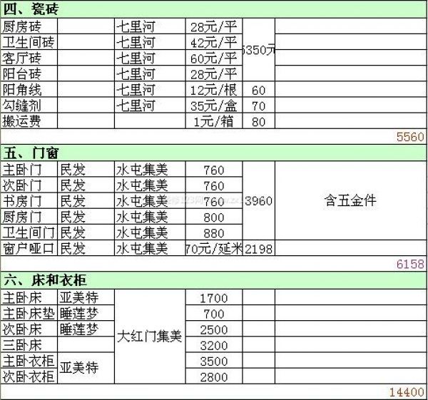 更完整的裝修費(fèi)用清單請點擊下載>東莞東江豪門100平米三室一廳裝修清單