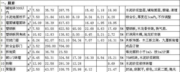 家庭裝修預算清單(一)