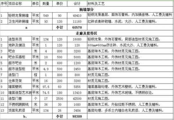 ktv裝修預(yù)算表一