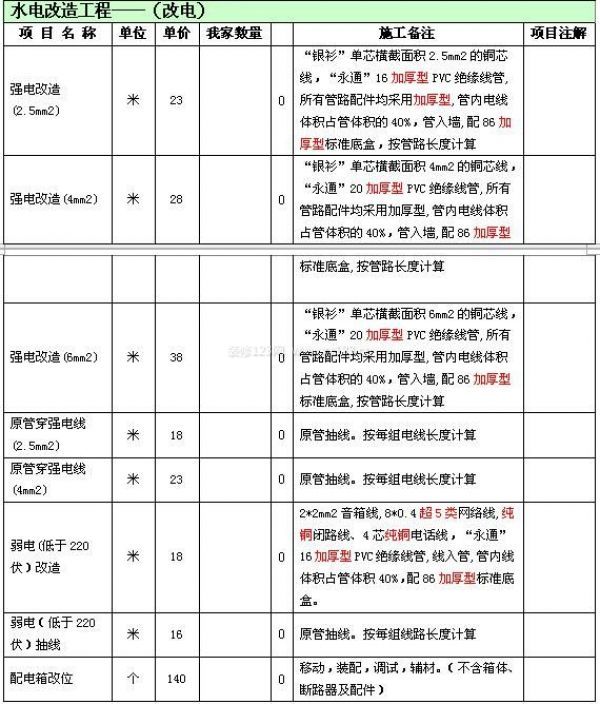 長春水電改造價格表,清晰費用做改造