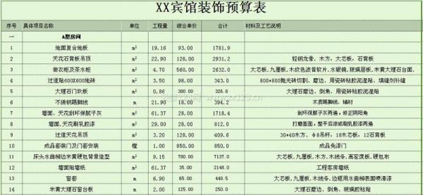 既然裝修前是一定要做裝修預算表的,那么賓館裝修費用的預算表又該如何做呢?今天小編就來對賓館裝修費用解密,給大家一份詳細的賓館裝飾預算表,供大家參考參考。