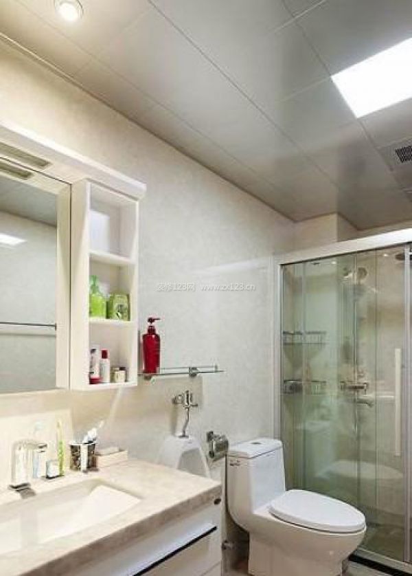 衛生間空間很大,里面玻璃拉門隔出淋浴間。