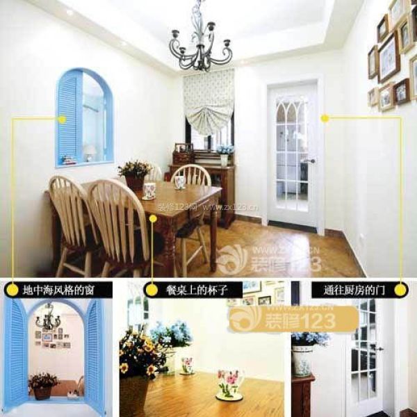 點評:小小的餐廳也很花心思,主人在細節(jié)上非常花心思。實木的餐桌和深色的地板搭在一起非常和諧,餐桌上、角落里都點綴著鮮花盆栽。藍色的窗戶把人帶到了那遙遠的海邊,好像身處在那些藍頂白墻的小屋一樣,仿佛推開窗就能看到那一望無際的愛情海。