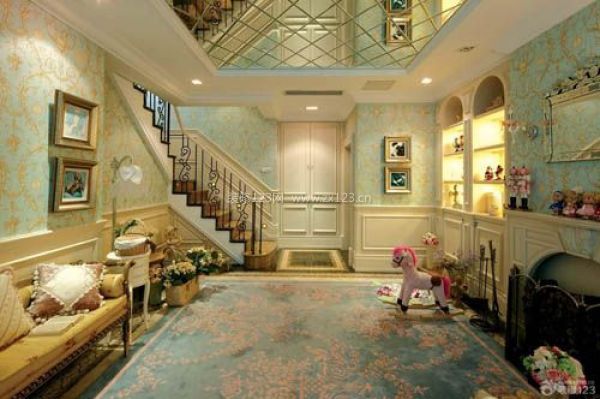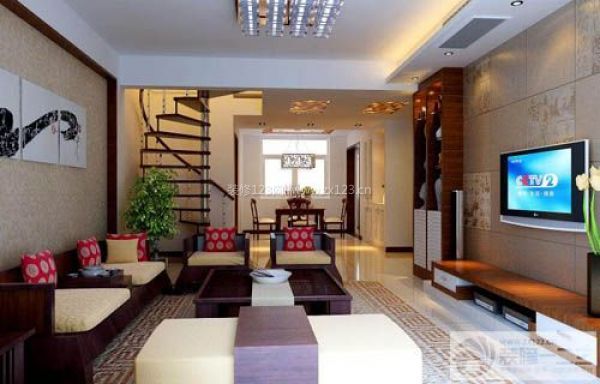一般客廳部分都是中空設(shè)計,使樓上樓下有效結(jié)為一體,有利于一樓的采光、通風(fēng)效果,更有利于家庭人員間的交流溝通,也使室內(nèi)有了一定的高差,這種立體空間,頓顯一份尊貴和大氣。正由于有了足夠的層高落差,設(shè)計時要注意彰顯這種豪華感。如在做吊頂時對燈具的款式的選擇面更大一些,可以選擇一些高檔的豪華燈具,以體現(xiàn)主人的生活和思想的品位。