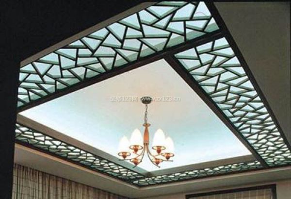 這是一款帶有中式傳統風格的異型吊頂。亂冰紋的花格設計,賦予了書房典雅的書卷氣息,透過花格的光芒,給空間帶來了智慧的聯想。這種吊頂一般適用于具有中式風格的家居中的客廳和書房以及餐廳等空間。吊頂因為鏤空的花格,使空間沒有壓抑感。