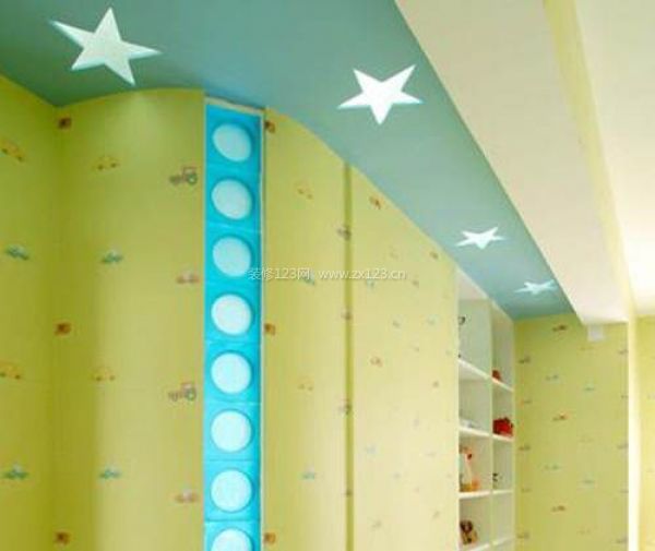 “天上的星星亮晶晶”看這款充滿兒童樂趣的吊頂。這樣的吊頂是否讓你想起自己的童年歲月呢?富有天空聯想的吊頂與卡通情趣的壁紙一起,給空間帶來了童話般的夢幻格調。