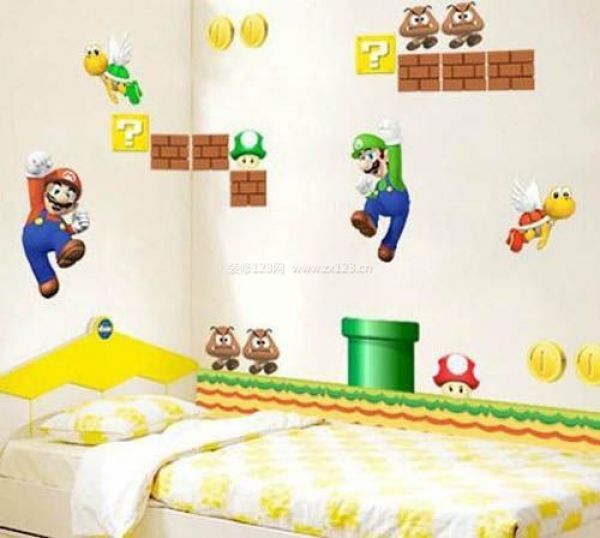 超級馬里奧大叔在你家寶貝的小房間里,還不把你家小王子爽翻了?雖然上學時候玩游戲的時間不多,但是看著滿墻滿墻的馬里奧大叔,小孩子的心里一定非常歡樂。
