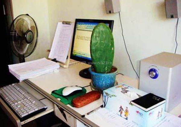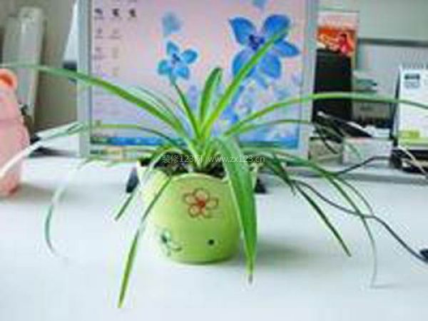 用仙人掌、仙人球,它可以抗擊電腦輻射,還可以有效的凈化空氣,不需特別照顧。