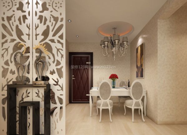 餐廳亮點:餐廳采用玄關(guān)做隔斷,使餐廳和客廳緩沖空間,視線不要對室內(nèi)一覽無余,保證室內(nèi)生活的隱秘性,使室內(nèi)之氣不致外泄,整體舒適優(yōu)雅的就餐環(huán)境。