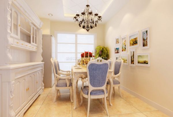 設(shè)計(jì)亮點(diǎn):米白色的餐廳背景墻制造出很多溫馨的氣氛,與純潔的白色相搭配,亮白色的餐桌,歐式座椅,營造出簡約不簡單的視覺效果。同時(shí)餐廳背景墻通過框畫的修飾,增強(qiáng)其整體的豐富性,給進(jìn)餐氣氛增加更多情趣。