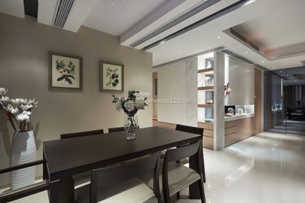 餐廳使用的實木的餐桌椅,簡單的設(shè)計,餐廳空間內(nèi)只在墻上掛上兩幅素雅的畫作為裝飾,顯得安靜舒適。餐廳的色彩設(shè)計其實非常重要,通常以接近土地的顏色,如棕、棕黃或杏色,以及淺珊瑚紅接近肉色為最適合,如果用灰、芥茉黃、紫或青綠色常會讓人沒有食欲。暗沉的顏色也要避免使用,有時為了兼顧相鄰空間的色彩統(tǒng)一也要盡量使用明快的顏色。