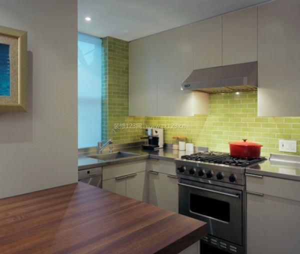白色櫥柜加綠色的墻面,在這樣的廚房里應該會享受到烹飪的樂趣吧。