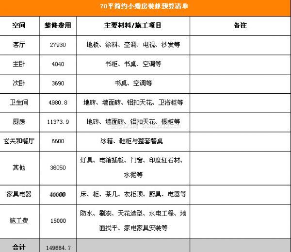 70平米裝修預算(帶2014年最新裝修報價)——簡裝、精裝、高檔裝修詳解