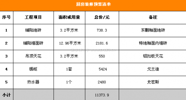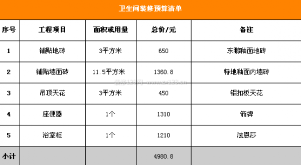 衛生間的裝修預算和廚房的裝修預算如下: