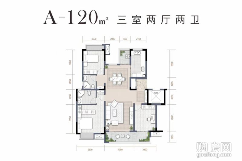 3室2廳2衛(wèi),A-120(3室2廳,120平,東南)