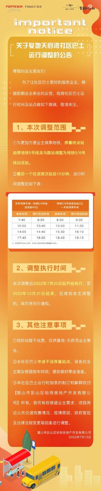近日,復(fù)地·天府灣社區(qū)巴士運(yùn)營(yíng)將會(huì)做出調(diào)整。