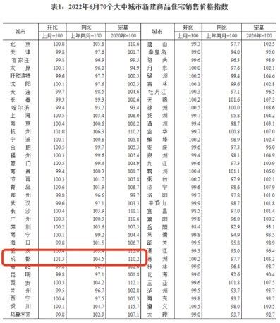 7月15日,國家統計局發布2022年6月70個大中城市商品住宅銷售價格變動情況,數據顯示,2022年6月,成都新房價格環比上漲1.3%,同比上漲4.5%;二手房價格環比上漲2.0%,同比上漲5.4%。
