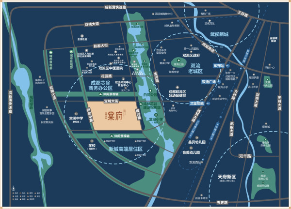 學校配套,雙流區是教育資源比較豐富的郊縣,項目西側雙江路旁就是棠湖中學新校區,這是一所國家重點中學。雙流區另一所中學則是雙流中學。項目北側一公里左右是東升二中,2公里處是棠湖小學,3公里外還有雙流藝體中學、東升一中等。