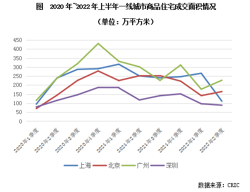 正是由于大量高收入群體的住房需求支持,一線城市的需求端支撐長(zhǎng)期表現(xiàn)強(qiáng)勁,尤其是在2020年上半年疫情發(fā)生以來(lái),一線城市的樓市表現(xiàn)超出預(yù)期,韌性十足。具體來(lái)看,2020年下半年樓市成交迅速反彈,北上廣深四個(gè)城市的商品住宅成交量均明顯走高,并達(dá)到2017年以來(lái)的最高點(diǎn),其中上海、廣州和深圳的同比漲幅均在15%以上。進(jìn)入2021年下半年,在全國(guó)樓市成交普遍大幅下滑的情況,一線城市成交規(guī)模仍能保持相對(duì)高位。進(jìn)入到2022年,在行業(yè)成交規(guī)模持續(xù)收窄的背景下,在2022年2季度一線城市成交下探的趨勢(shì)率先趨穩(wěn)。除上海因?yàn)橐咔榉磸?fù)影響,導(dǎo)致2季度商品住宅成交進(jìn)一步環(huán)比下跌之外,深圳環(huán)比降幅明顯收窄,北京、廣州成交規(guī)模更是出現(xiàn)了觸底回升,其中廣州市商品住宅成交量更是較2020年同期增長(zhǎng)了14%。