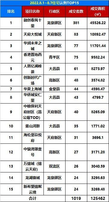 成都融創(chuàng)春風(fēng)十里成交銷量為381套,成交面積45526.22平方米,榮升榜首!