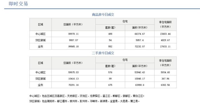 8月12日,成都市住建局住建蓉e辦數據顯示,成都市全市商品房成交(備案)總面積99865.18平方米,其中其中商品住宅成交(備案)552套,商品住宅成交(備案)面積72232.07平方米。二手房成交(備案)總面積70291.16平方米,其中二手住宅成交備案675套,二手住宅成交(備案)面積63988.6平方米。