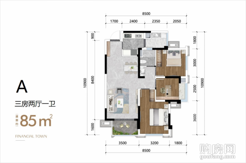 振興環(huán)天金融城A戶型(3室2廳,85平,南北)