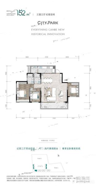 B-152㎡,套三雙衛(3室1廳,152平,南北)