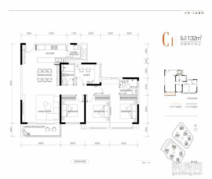 中海天府麓灣4室戶型95-132㎡ (4室2廳,132平,東)