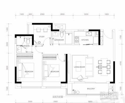中海天府麓灣3室戶型95-132㎡ (3室2廳,100平,東)