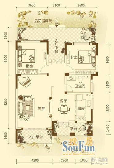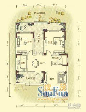 一期6號樓合院別墅R1戶型(2室2廳,88.32平,)