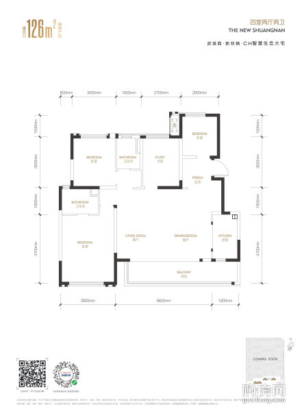 中國鐵建雙楠樾府-建面約126平戶型(4室2廳,126平,南北)