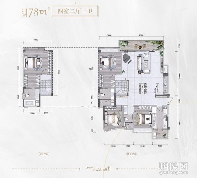中建錦瀾壹號-瀾樾建面約178㎡戶型(4室2廳,178平,南北)