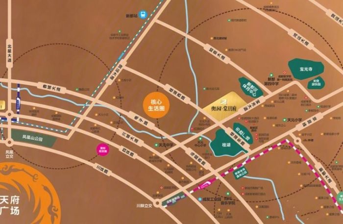 奧園棠玥府地處新都老城腹地,寶光大道與桂湖西路交匯處,這里是新都最成熟、最繁華之地。東臨桂湖公園,南側(cè)飲馬河蜿蜒流淌,奧園棠玥府擁有非常優(yōu)質(zhì)的自然生態(tài)資源。該項(xiàng)目占地約31畝,建筑面積約11萬(wàn)㎡。建筑風(fēng)格為港式的建筑品位與綠色、新古典主義的藝術(shù)元素相結(jié)合,具有濃厚的人文氣息。整個(gè)社區(qū)規(guī)劃秉承 “以人為本、科學(xué)運(yùn)動(dòng)、健康生活”的開(kāi)發(fā)理念,內(nèi)部設(shè)有適齡兒童活動(dòng)區(qū),看護(hù)區(qū)、健身區(qū)、成人活動(dòng)區(qū)以及健身跑步道,營(yíng)造一種人性化的文明社區(qū)。建筑戶(hù)型都比較注重景觀,能最大限度地滿(mǎn)足每一戶(hù)的景觀視野,享受最大化的景觀資源。而社區(qū)的商業(yè)將按照生活的高品質(zhì)進(jìn)行規(guī)劃,為業(yè)主提供日常購(gòu)物需求。